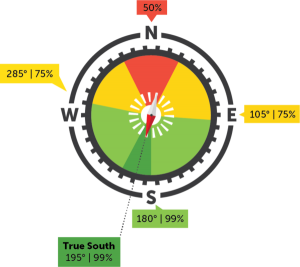- Una matriz solar perfecta estará en un techo inclinado (6/12 a 12/12) orientado a +/- 15 grados del sur verdadero. Dicho esto, los paneles solares producirán hasta el 90% de su potencia nominal incluso en más al este y al oeste. orientaciones , por lo que si el sitio de tu futura casa hace imposible una orientación hacia el sur, no significa que la energía solar no sea una gran inversión.
